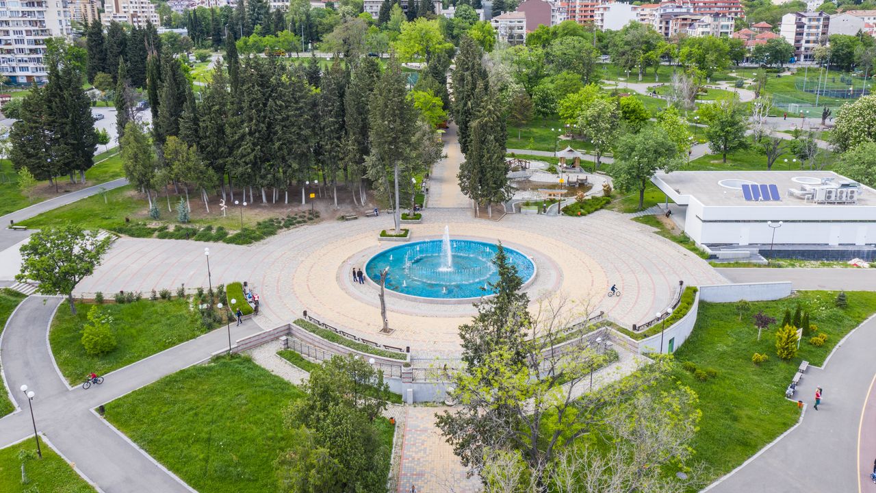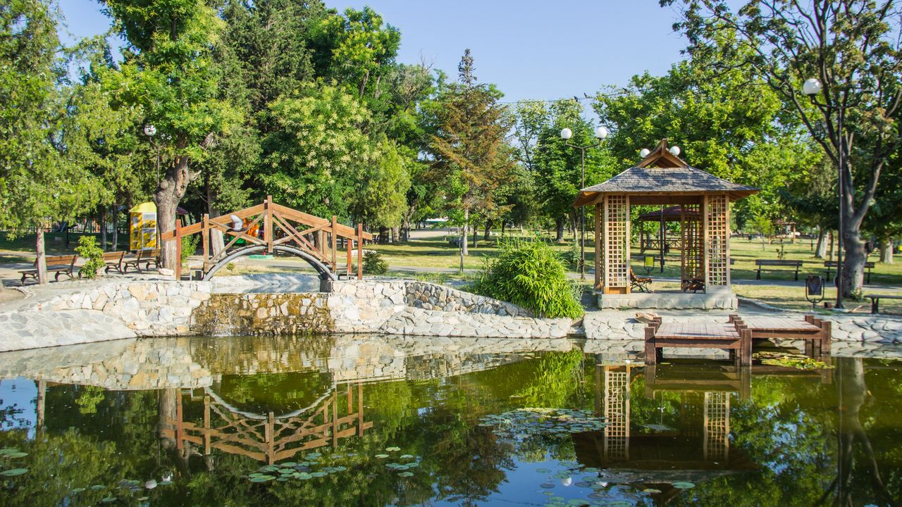 The park combines numerous playgrounds, sports fields, the latest and most modern skate park, a mini zoo with various species of birds, fountains, a “Japanese lake” with a garden, and two rock gardens.